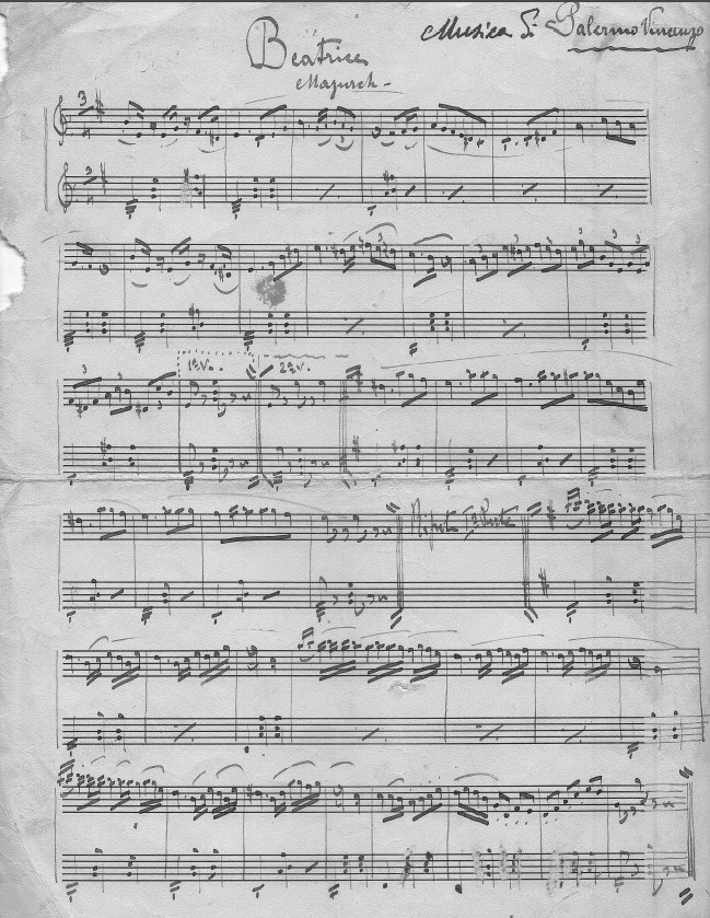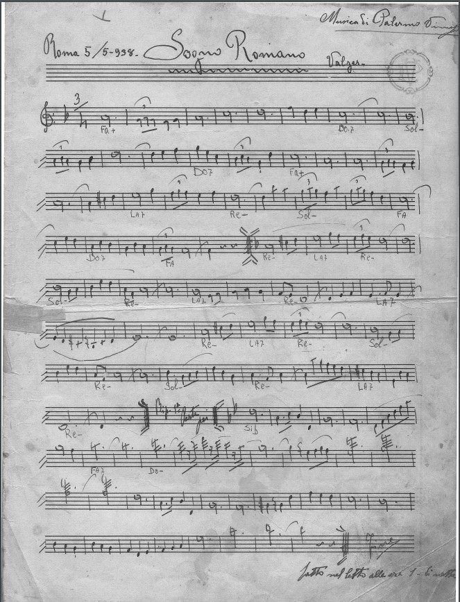 MUSICA COMPOSTA A ROMA IL 5 MAGGIO DEL 1938 nello storico incontro tra BENITO MUSSOLINI E ADOLF HITLER. ''FATTO NEL LETTO ALLE ORE UNA DI NOTTE''. Compositore: Maestro VINCENZO PALERMO